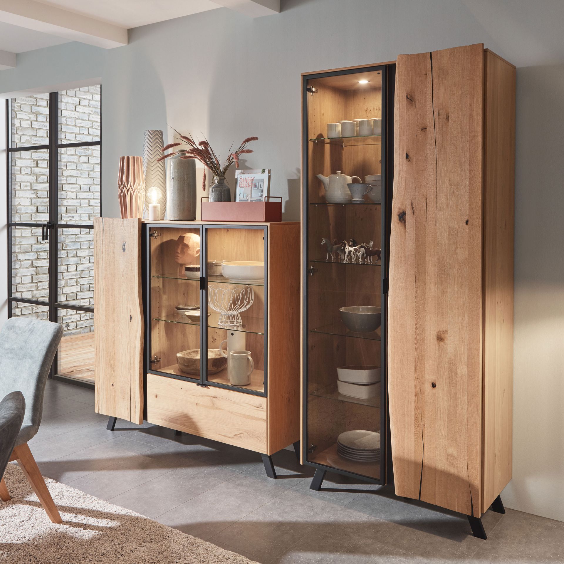 Im Wohnzimmer darf es auch ein bisschen mehr sein. Purismus ist das Eine, der topaktuelle Trend nach üppiger Deko das Andere. Es muss nicht immer schlicht sein und weniger ist auch nicht immer mehr. Deshalb halten auch wieder Samt, Seide und Brokat Einzug in unsere Wohnzimmer. Dazu gesellen sich warme Holztöne bei Regalen, Kommoden, Vitrinen und TV-Möbel.
