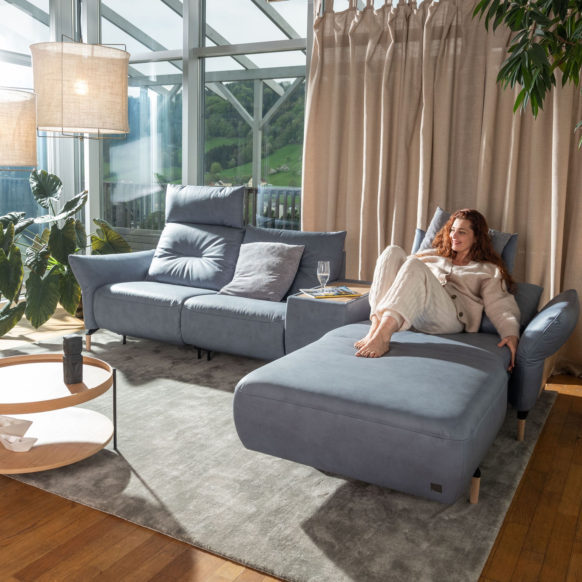 Fließende Formen, rund, organisch und elegant, das ist die aktuelle Gestaltungslinie bei Sofa- und Wohnlandschaften. Sie laden ein, sich fallen zu lassen, zu versinken und einzutauchen in diese neue Gemütlichkeit und Wohnkultur der Entspannung.
